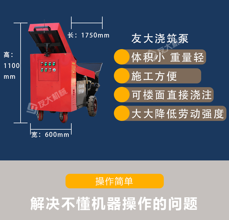 微型二次构造柱专用泵采用全机械化操作,是人工浇筑混凝土的上百倍,缩短了施工工期。此泵机浇筑混凝土连续性好、输送效率高、节约了劳动成本。此泵机体积小、施工方便、操作简单、可楼面直接浇注,大大降低了劳动强度。