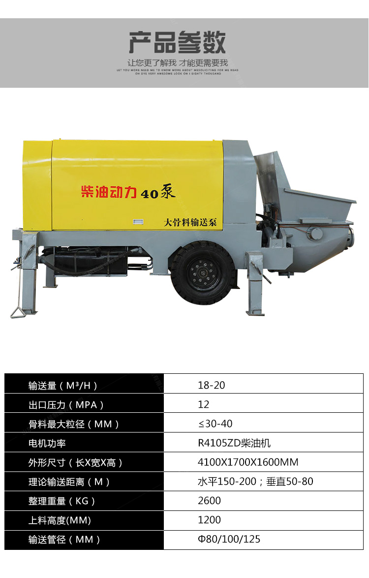 二次构造柱专用地泵(40泵)广泛应用于二次构造柱填充、地暖工程、屋面、高层建筑的墙、水库、水电站、港口、码头、基础处理、软弱地基、加固注浆、地铁、矿山施工中回填灌浆锚杆支护。...